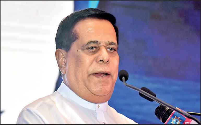From left: CASA Treasurer Mushin Kitchilan, Vice Chairman Janesh Ratnadasa, Ports, Shipping and Aviation Ministry Secretary K.D.S. Ruwanchandra , Chief Guest Ports, Shipping and Aviation Minister Nimal Siripala De Silva, CASA Chairman M.I.S. Sabar , Sri Lanka Port Authority Chairman Keith D. Bernard and CASA Secretary General Ralph Anandappa – Pix by Ruwan Walpola